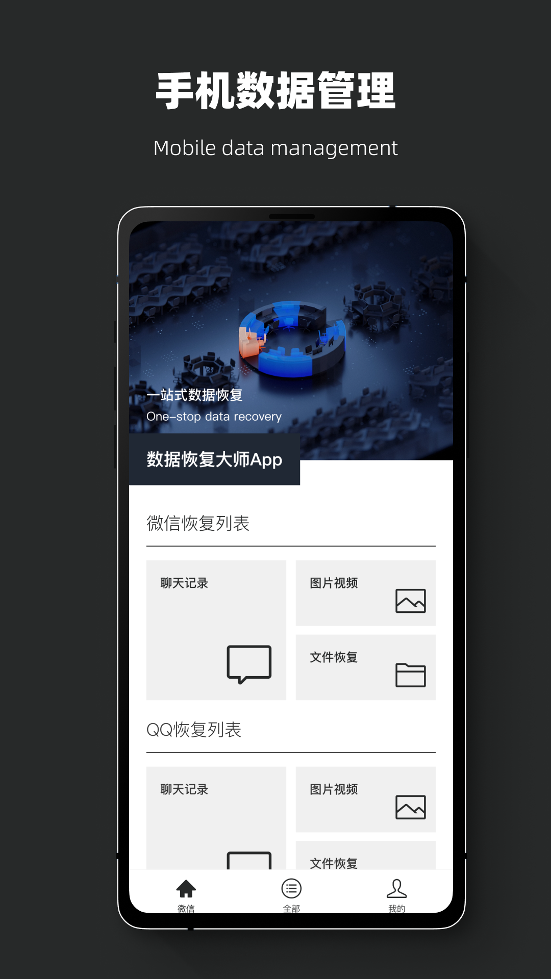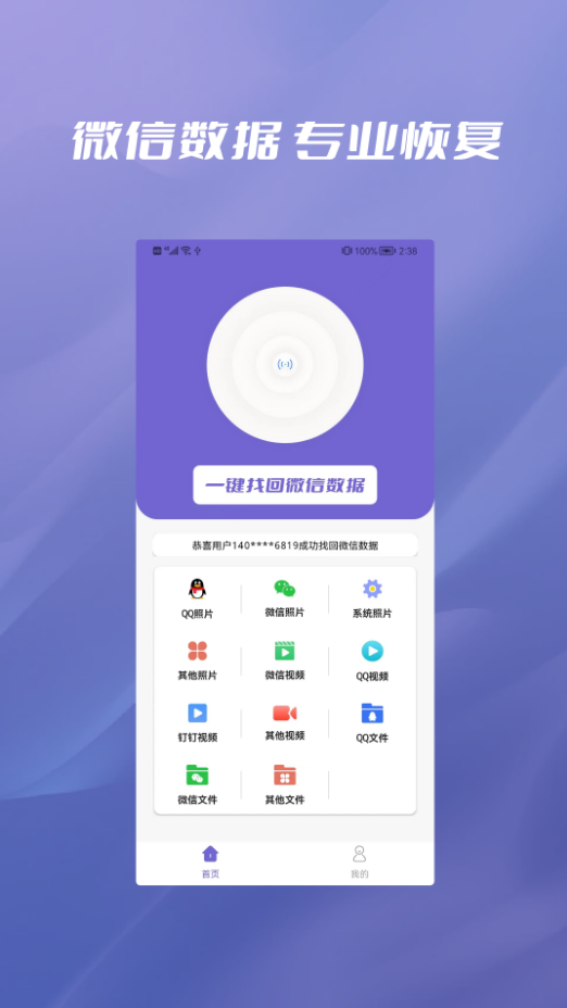 一款致力于手机数据恢复、信息数据的恢复软件。专注安卓数据,包含数据找回、照片找回、文件找回、聊天记录恢复、好友恢复等数据恢复,安全快捷,为数据的找回、丢失及恢复提供解决方案和技术支持。 全程工程师一对一对接服务,工程师协助恢复,免去数据丢失的烦恼。